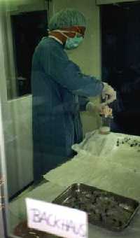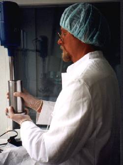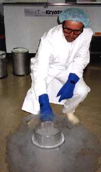 Nach Herstellung des Organextraktes in Steril-Kabinen wird dieser auf Spritzen gezogen. | Anschließend werden die Präparate in Flüssig-Stickstoff bei -180°C schockgefroren und bei -80°C gelagert |